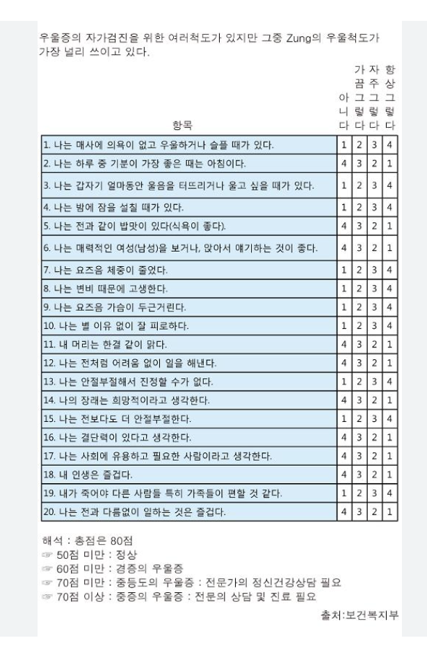 ☞ 우울증 체크리스트 다운받아 사용하세요.
